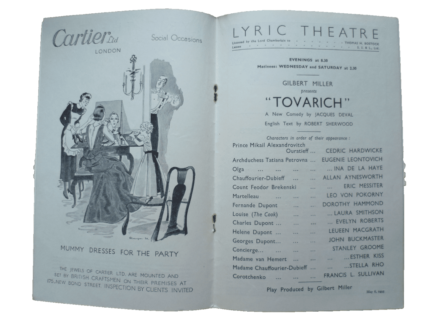 1935 Theatre Programme Tovarich – Cedric Hardwicke Eugenie Leontovich