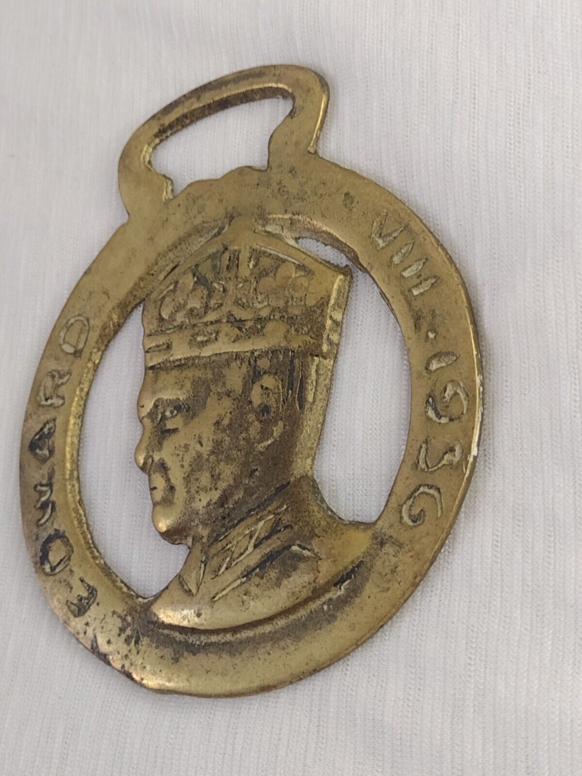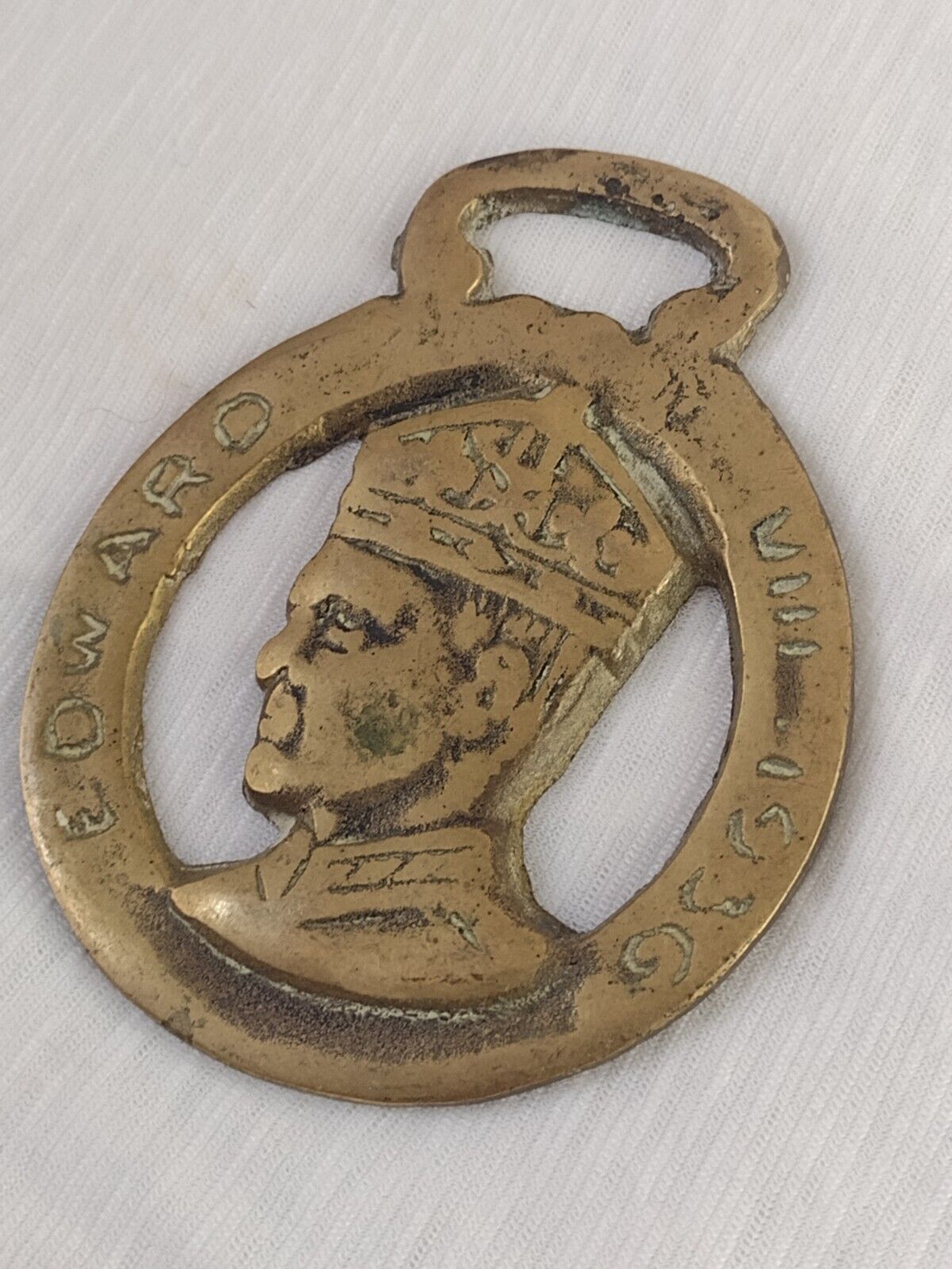 1936 Edward VIII Horse Harness Horse Tack Medallion 9.6cm Cast Brass Antique Org