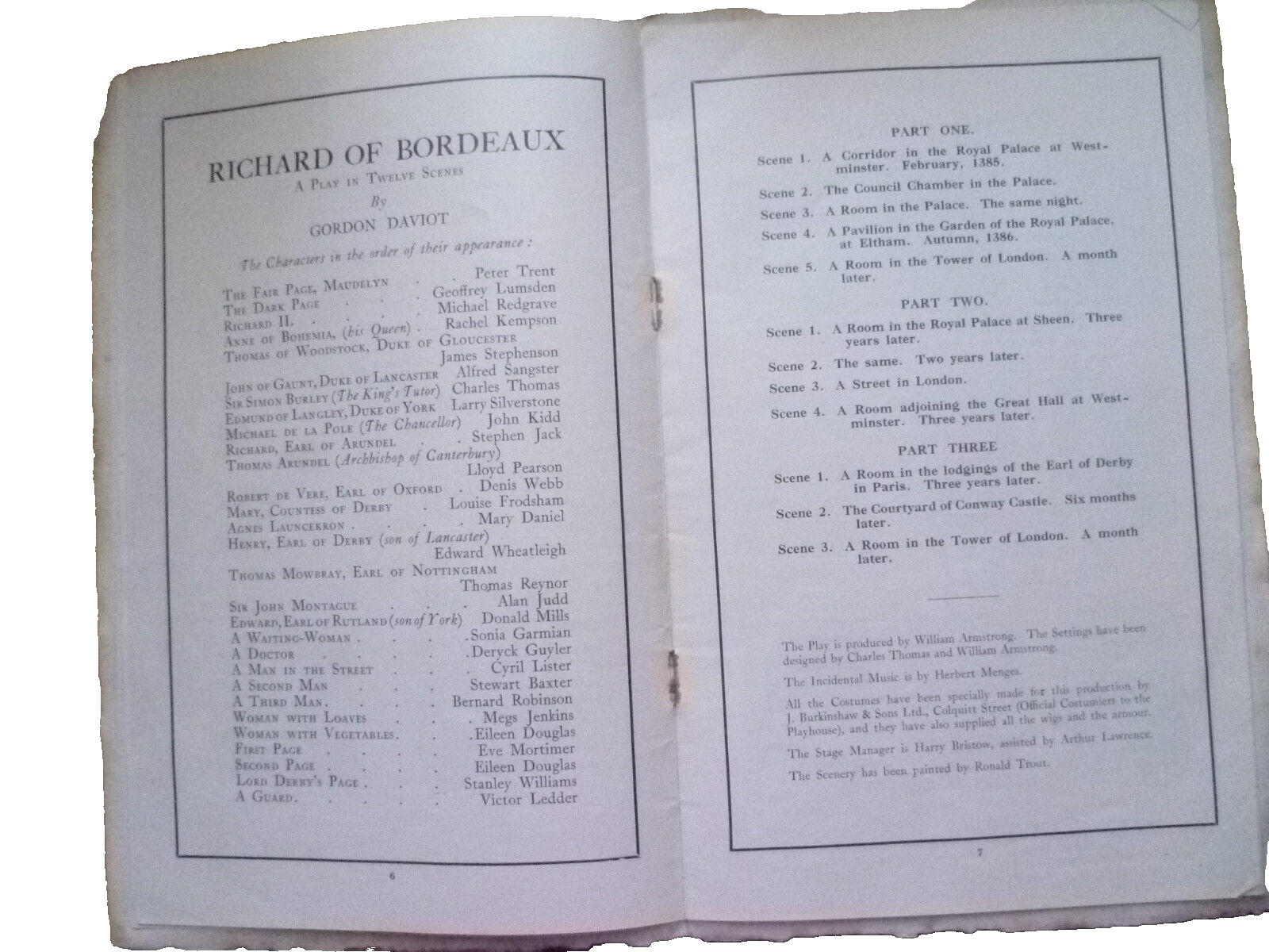 1936 Richard Of Bordeaux – Michael Redgrave Rachel Kempson James Stephenson