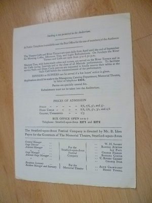 Seller note: Very Good ''William Shakespeare Memorial theatre Shakespeare Festival Programme,by The Stratfotd Upon Avon Festival Company