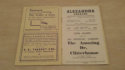 You are purchasing an original vintage theatre programme of: 1938 Alexandra Theatre: Diana Caird Peter Rosser in THE AMAZING DR CLITTERHOUSE