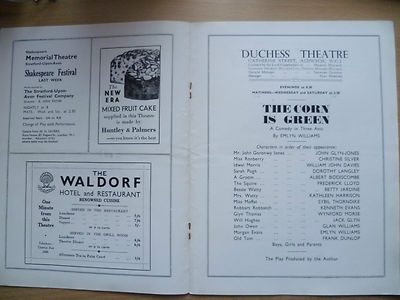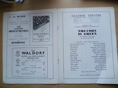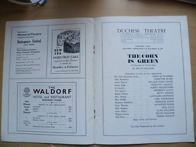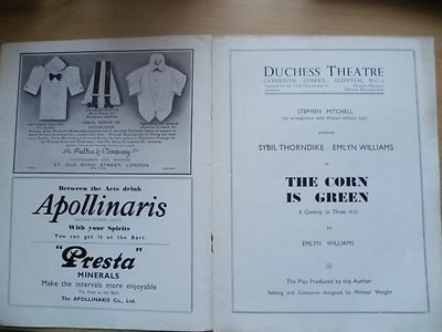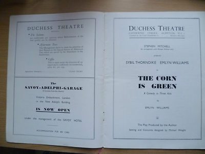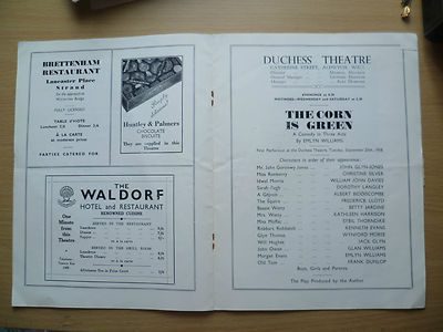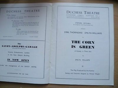 You are purchasing old an original vintage very collectable: DUCHESS THEATRE PROGRAMME- THE CORN IS GREEN by Emlyn Williams