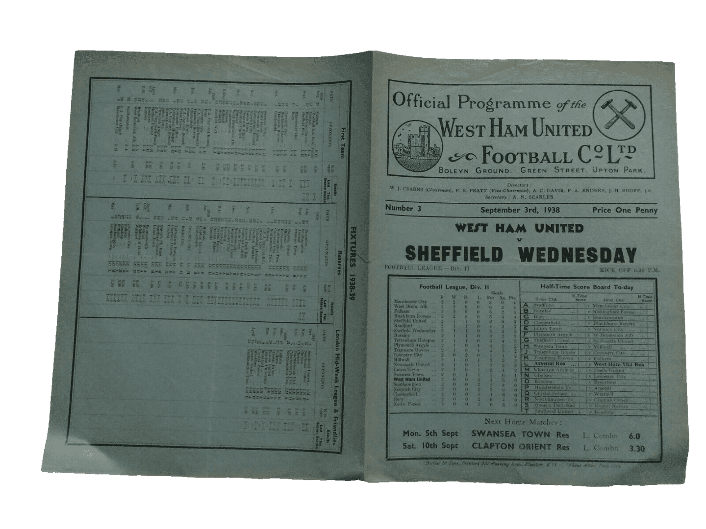 Be the first to review “1938 West Ham United v Sheffield Wednesday 3rd Sept League Div II – Very Rare” Cancel reply