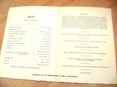 You are purchasing vintage & original programme of : Shakespeare Memorial Theatre Programme – OTHELLO~ 1939 Shakespeare Festival