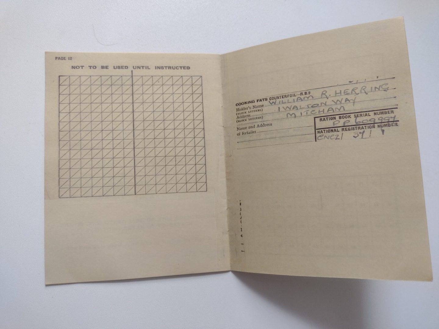 1941 Ration Book Supplement Spare Book For Herring William