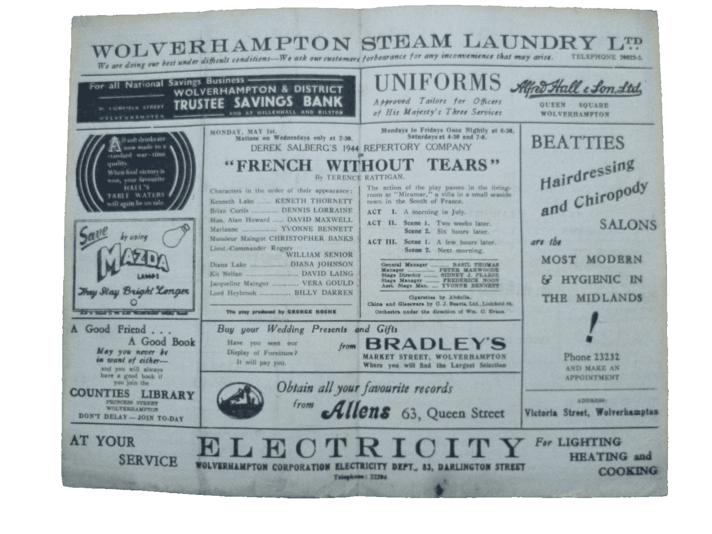 1944 Theatre Programme French Without Tears – Kenneth Thornet Yvonne Bennett