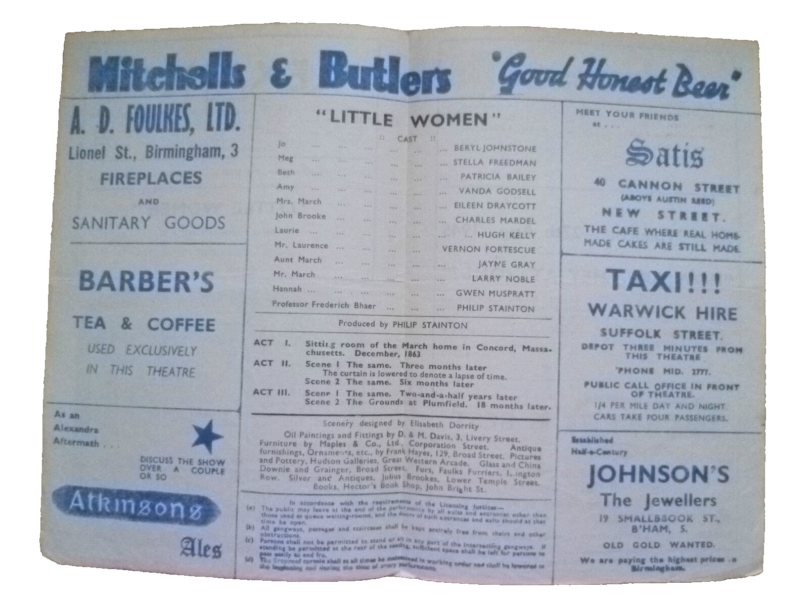 You are purchasing vintage & original programme . 1945 Alexandra Theatre Programme  Little Women By Marian De Forest