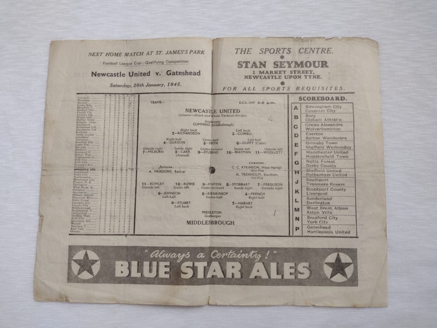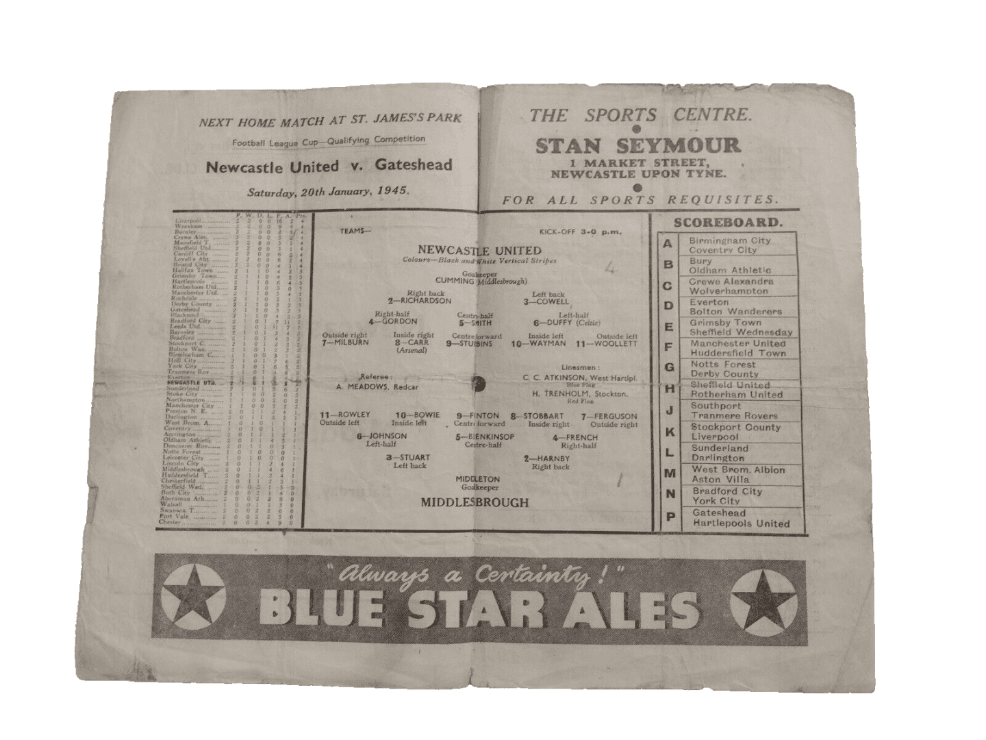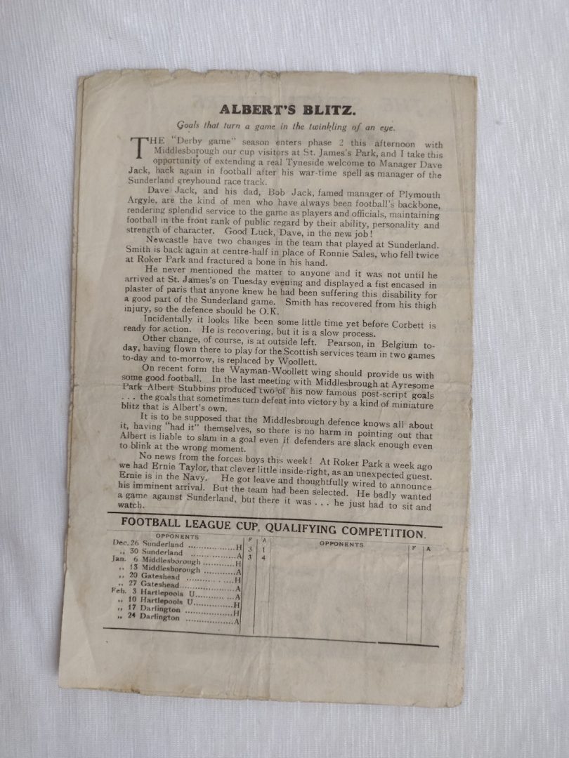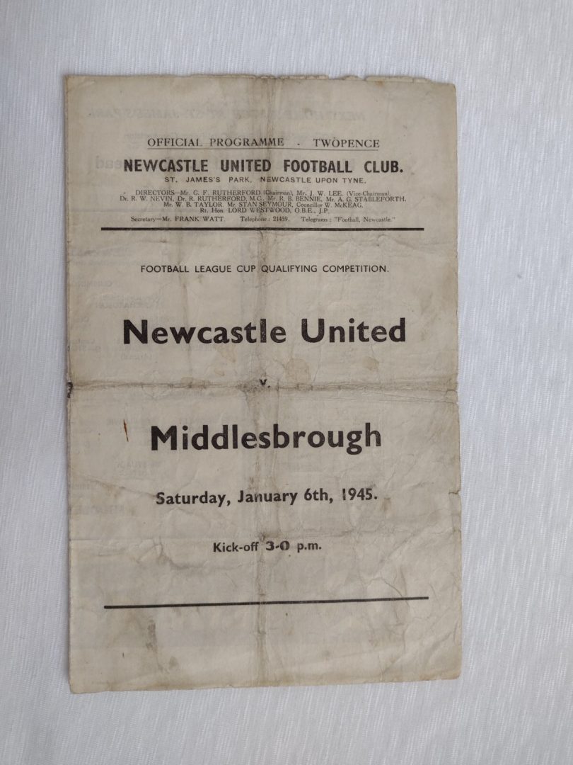 1945 Newcastle United v Middlesbrough 6th January League Cup Qualifying Match