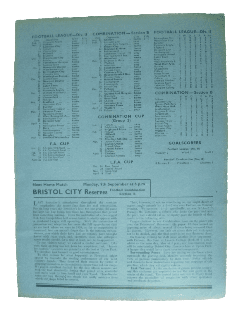 You are purchasing very collectable & Original Single Sheet football Programme. 1946 League Division II WEST HAM UNITED v LEICESTER CITY, 7th Sept, Rare This Programme is the extremely rare fuel emergency issue”