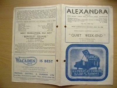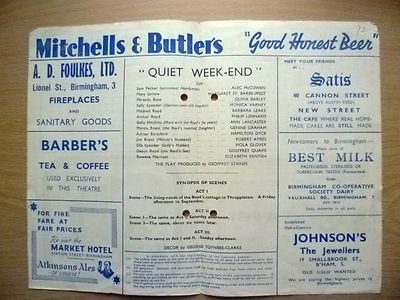 You are purchasing vintage & original Programme of : Alexandra Theatre Programme 1946- QUIET WEEK END by Esther McCracken