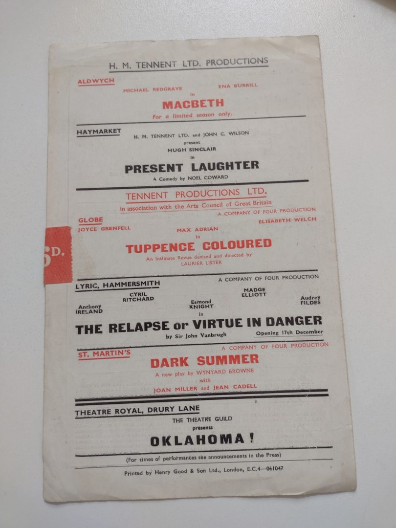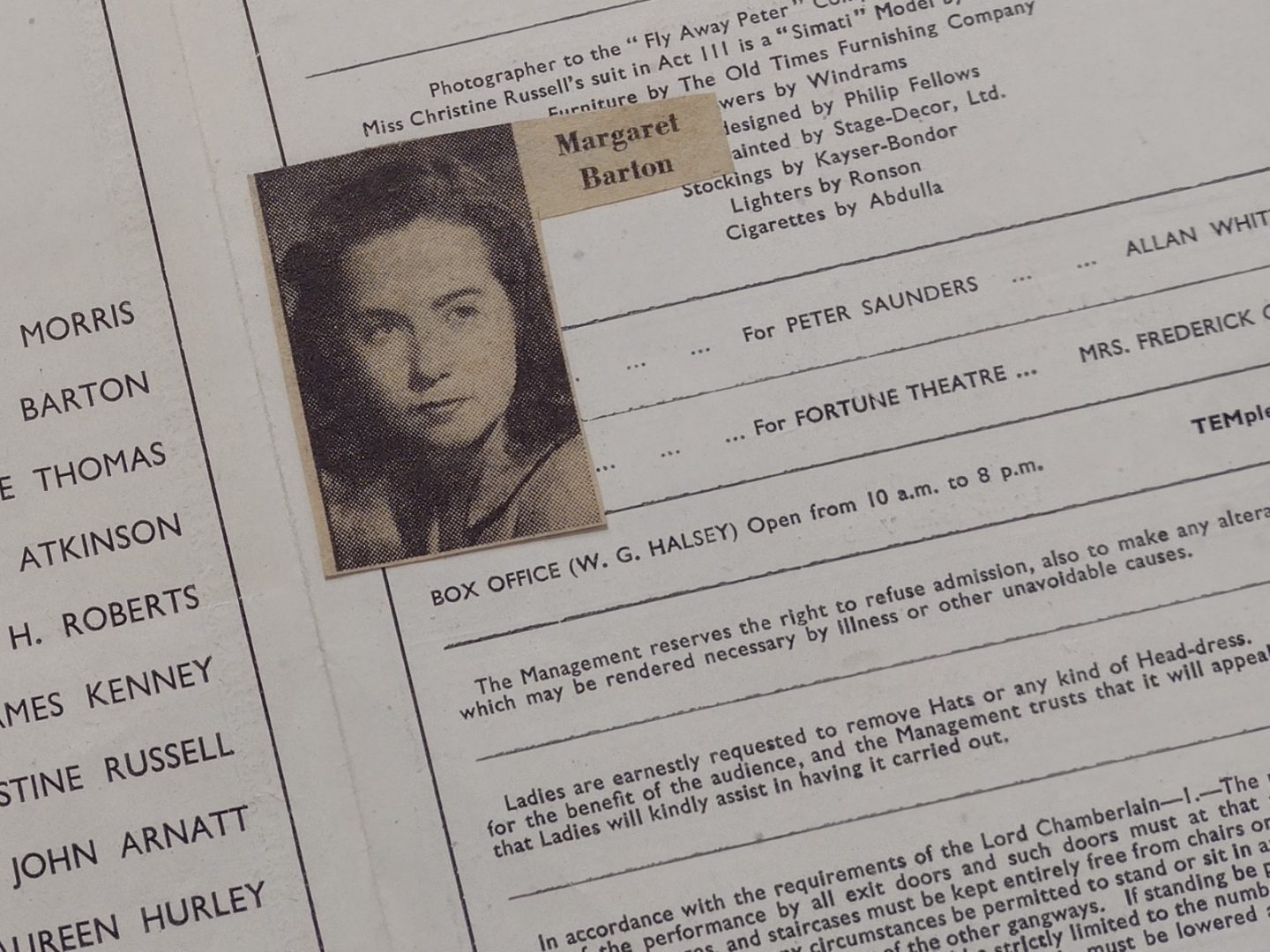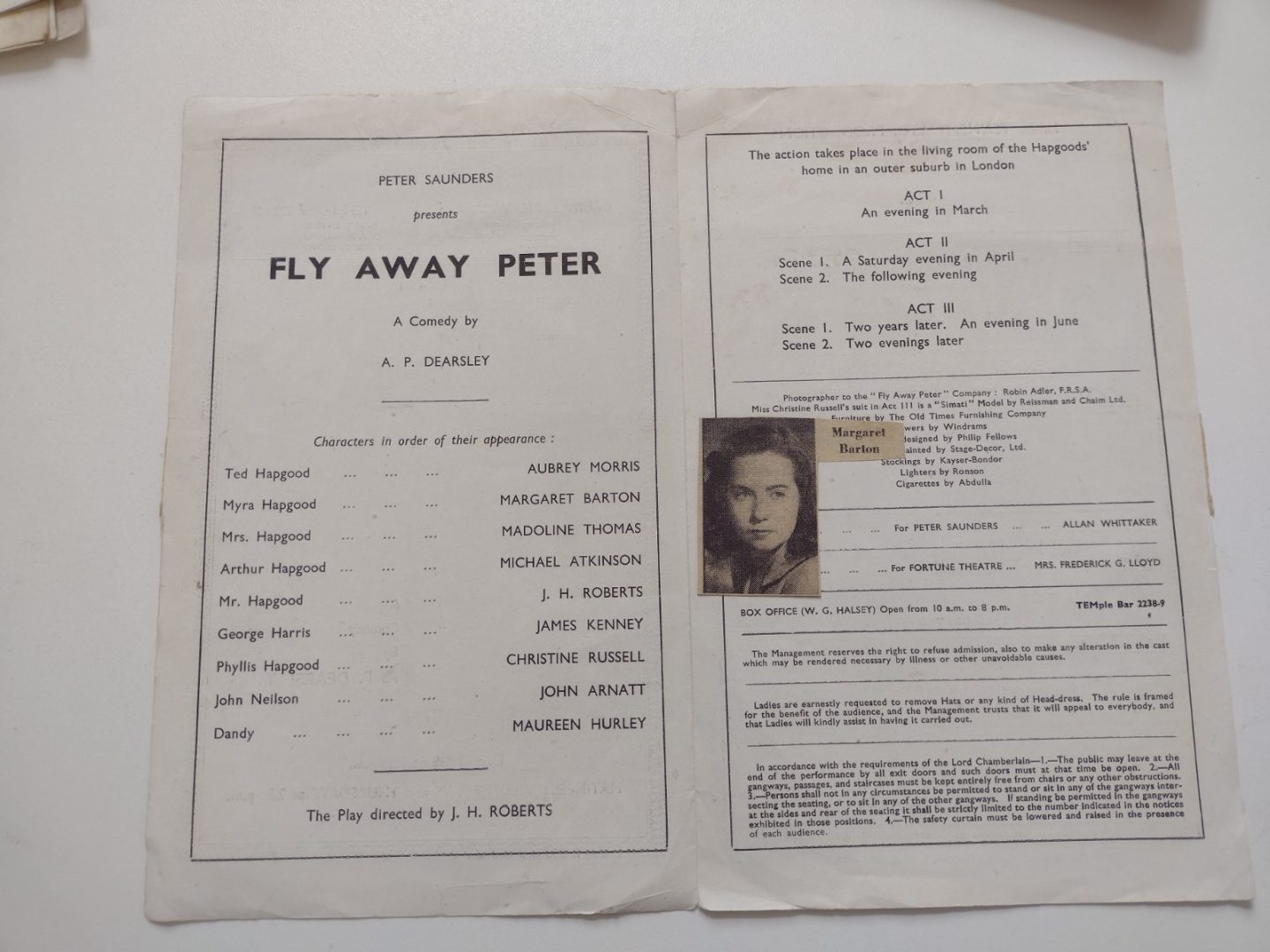 1947 Fortune Theatre Fly Away Peter Margaret Barton JH Roberts J Kenney C Russel