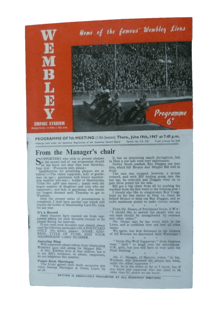 1947 Speedway Wembley v Belle Vue 2nd Rnd Championship Race Match 19 June
