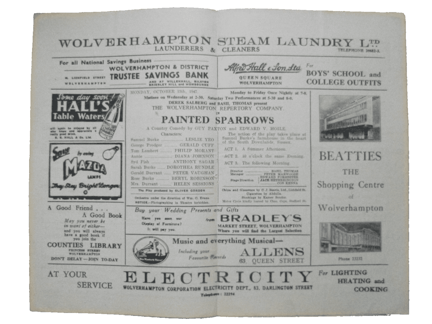 1947 Theatre Programme: Painted Sparrows – Leslie Yeo Gerald Cuff Diana Johnson