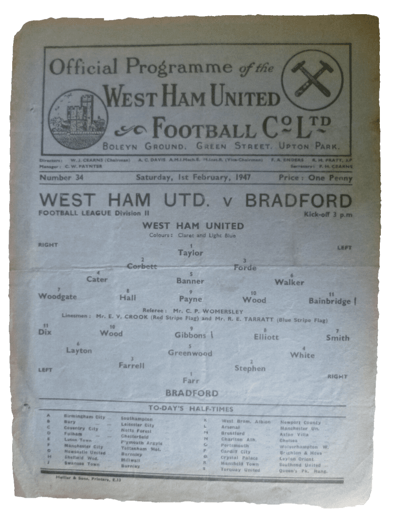 1947 West Ham United v Bradford Park Avenue 1st February, Rare