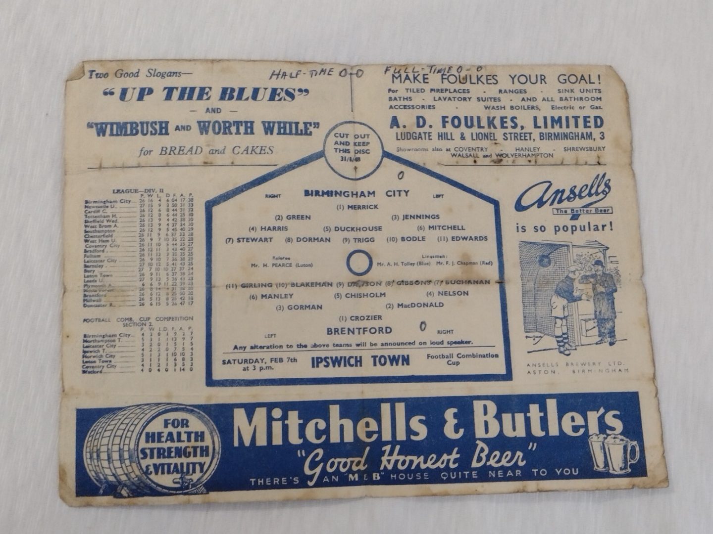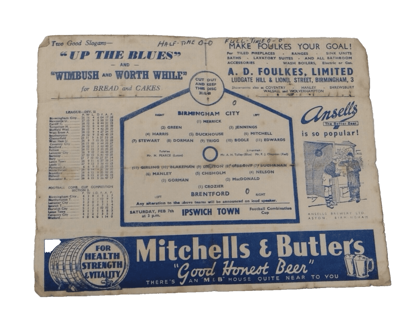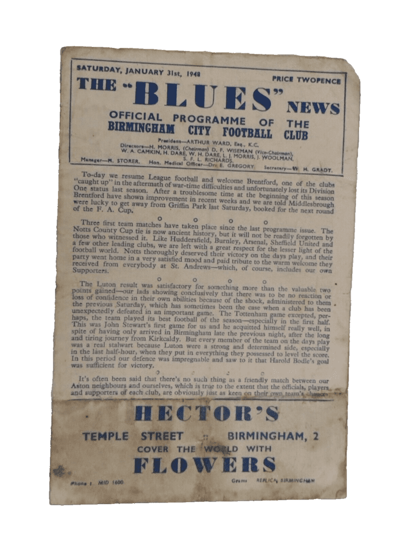 1948 Birmingham City v Brentford 31st Jan The Blues News Programme