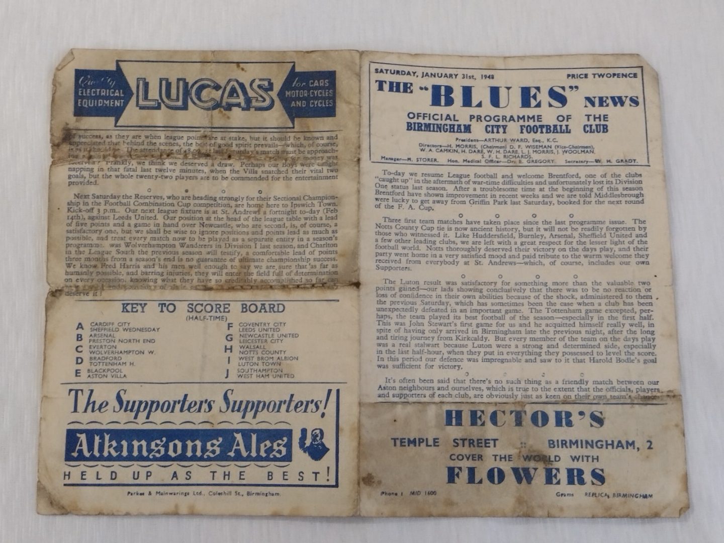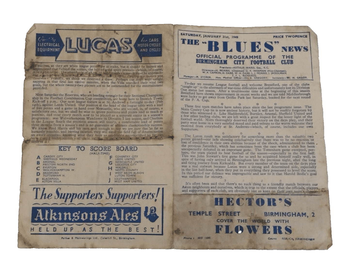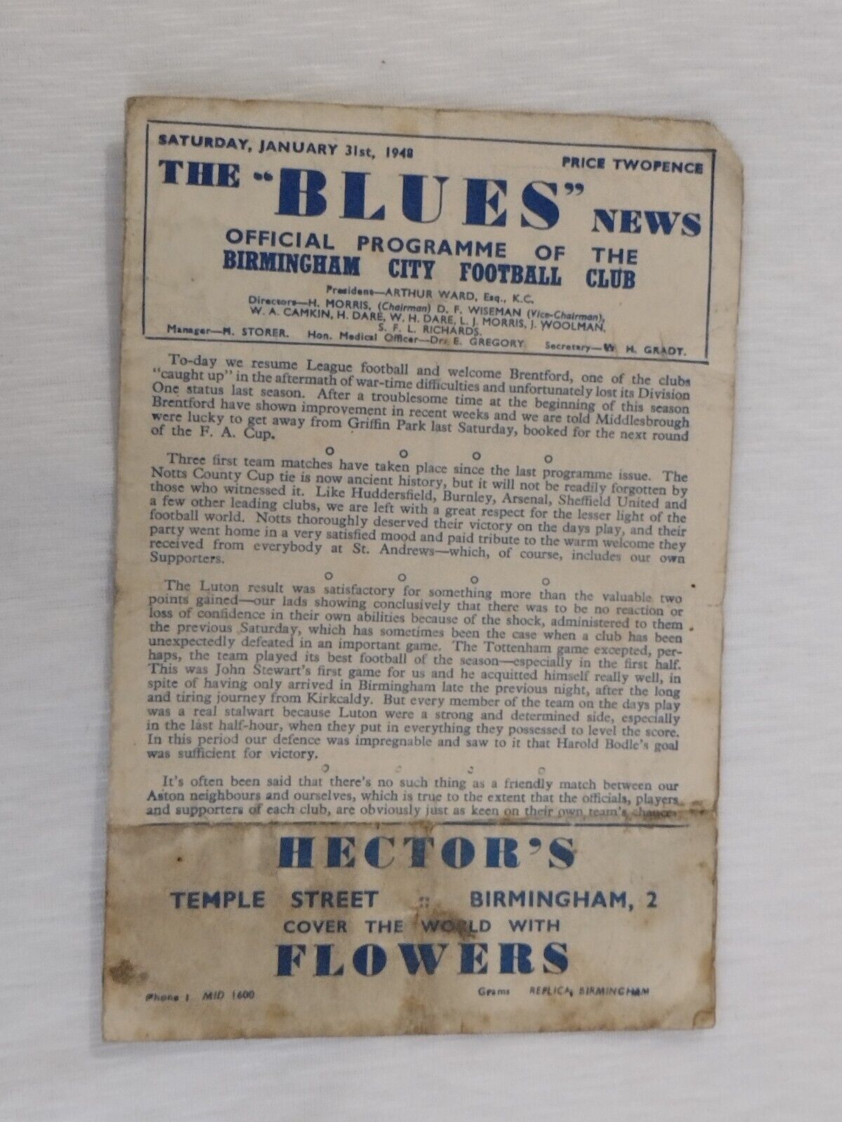 1948 Birmingham City v Brentford 31st Jan The Blues News Programme