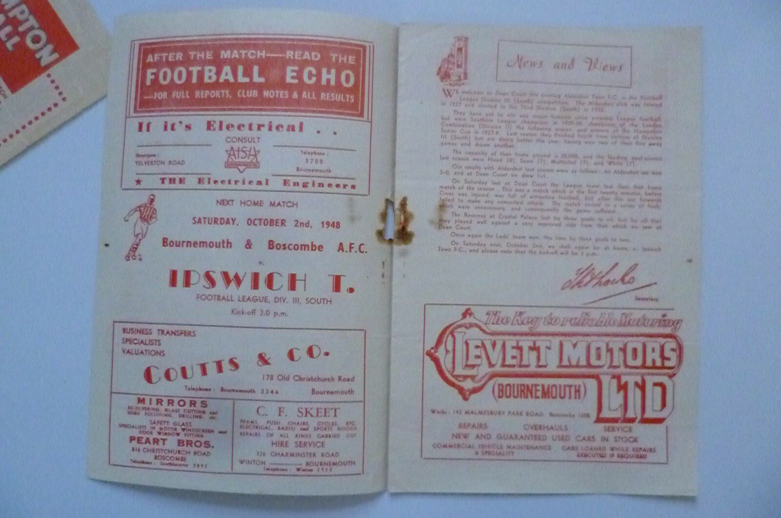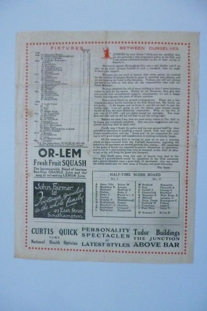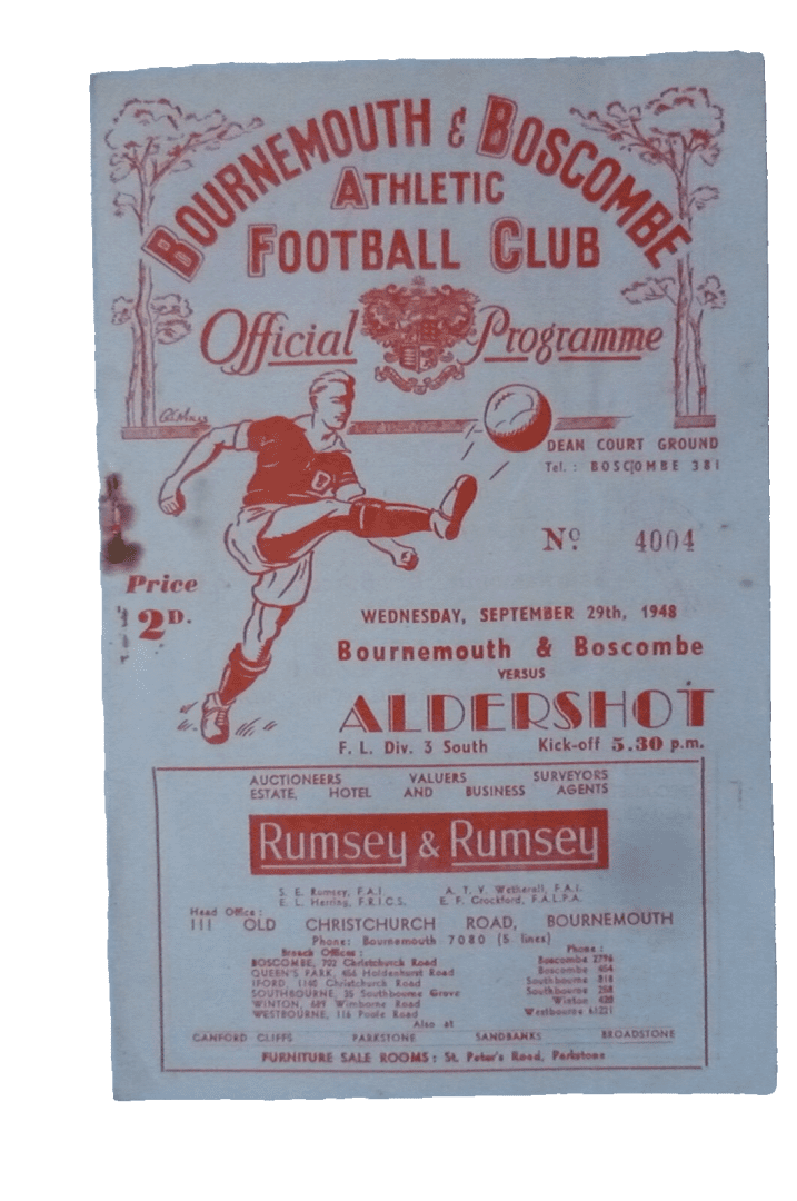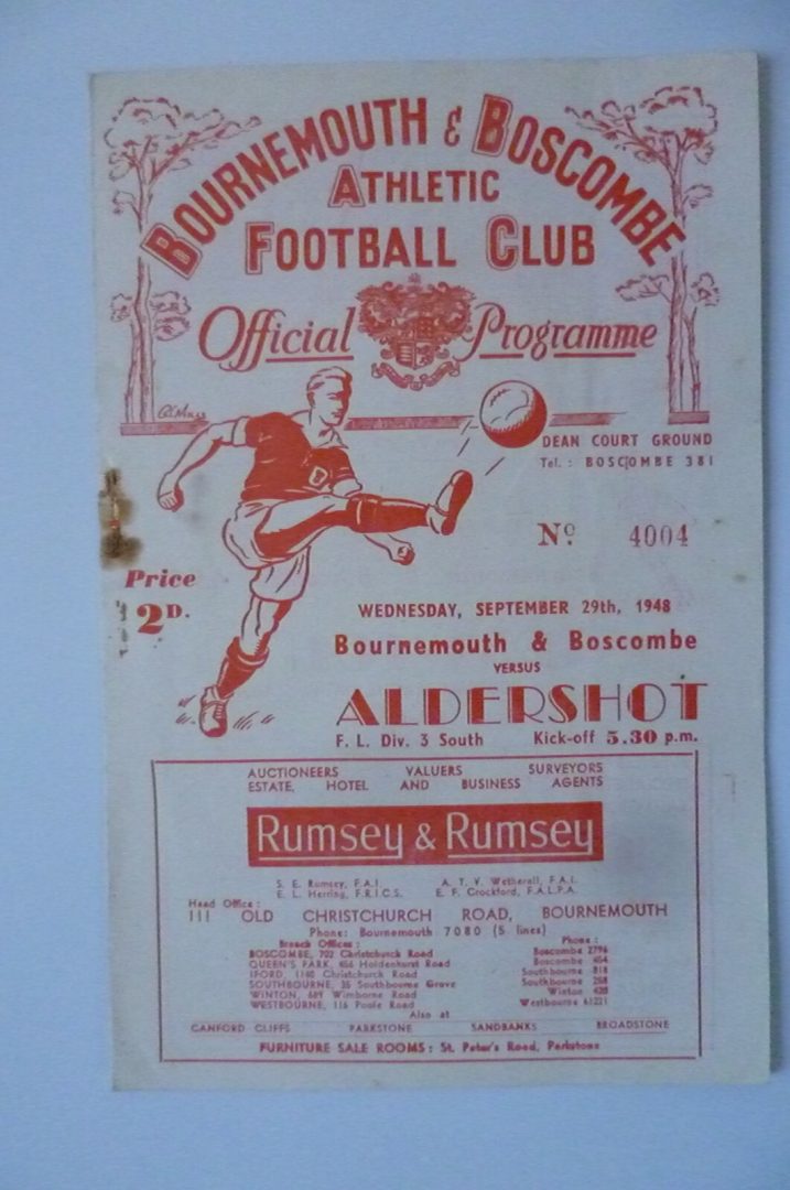1948 Bournemouth & Boscombe Athletic v Aldershot – Div 3 South 29 Sept