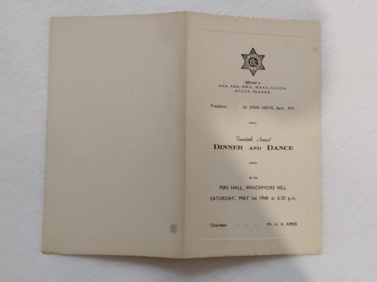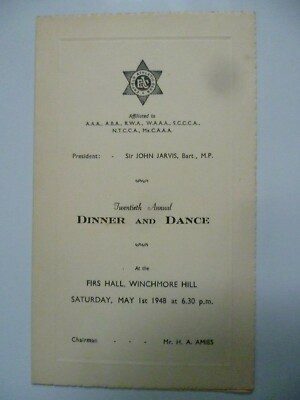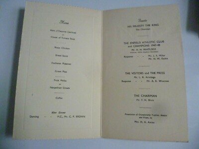 1948 Dinner Menu 1st May 20th Annual Dinner and Dance Menu The Enfield Athletic
