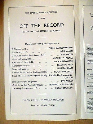 You are purchasing the original vintage 1948 Piccadilly Theatre Programme: Daniel Mayer present:OFF THE RECORD by Ian Hay & Stephen King Hall.