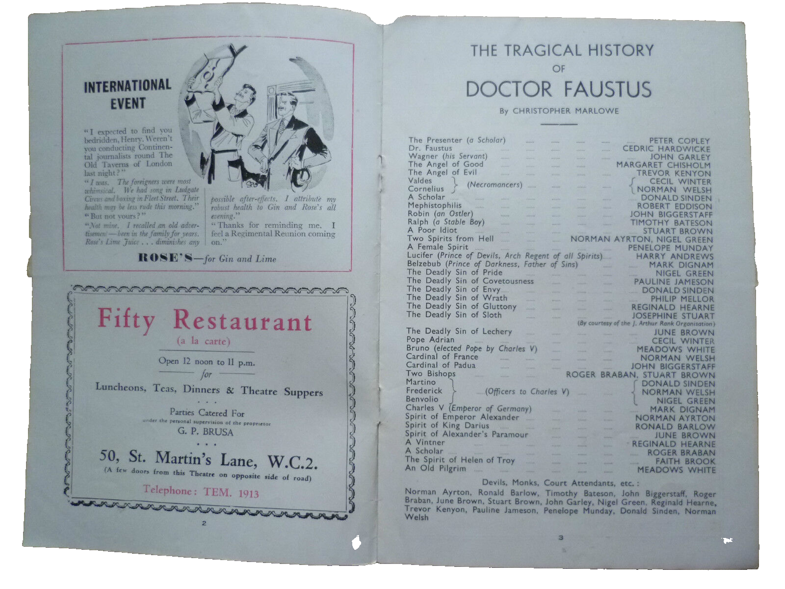You are purchasing old an original vintage: New Theatre Programme 1948- THE TRAGICAL HISTORY OF DOCTOR FAUSTUS by C Marlowe.