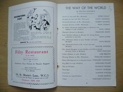 1948 Theatre Programme The Way Of The World – Harry Andrews Edith Evans F Brook
