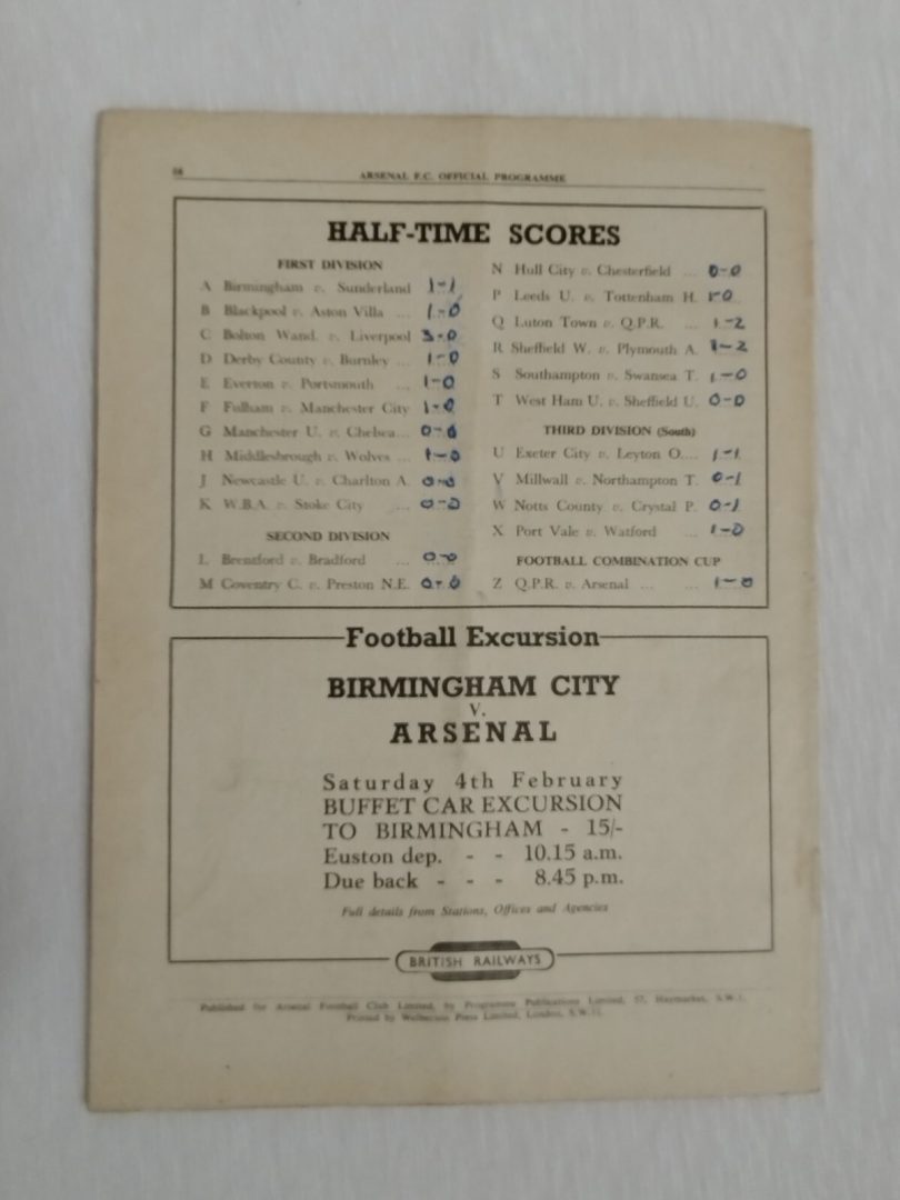 1949/50 Arsenal v Huddersfield Town, 14th January League Division One