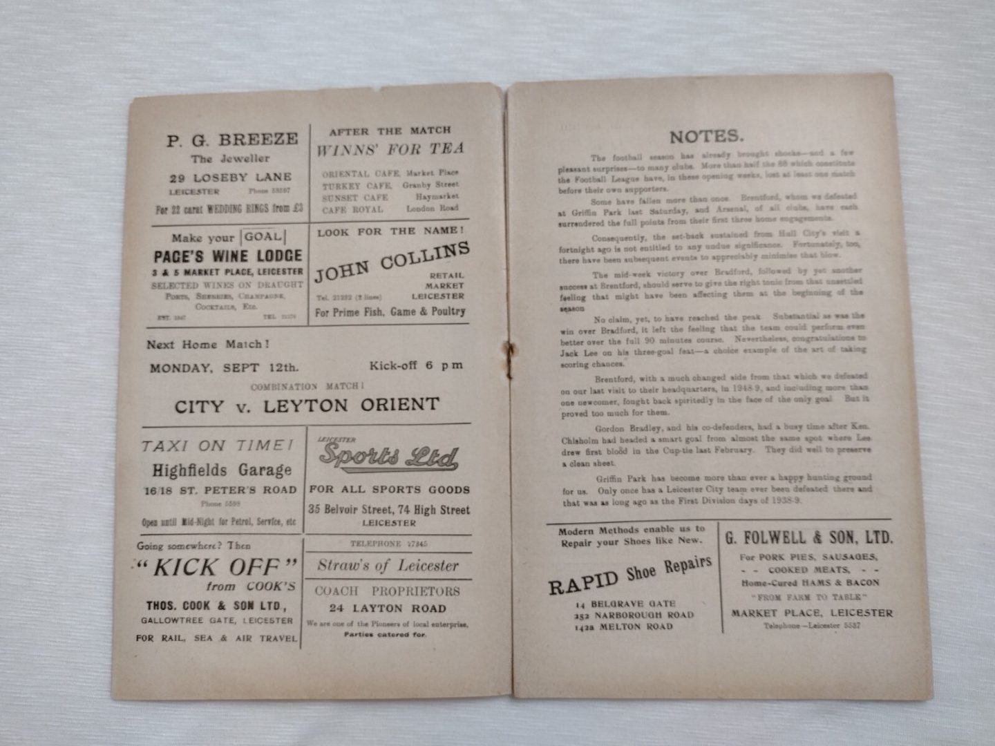 1949 Leicester City v Blackburn Rovers 10th September