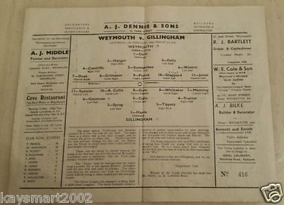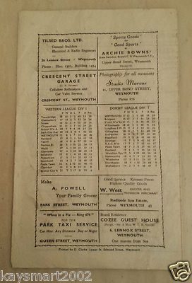 1949 Weymouth v Gillingham – 5th February Dorset League