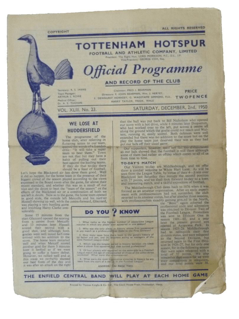 1950/51 Tottenham Hotspur V Middlesbrough, 2nd December- Championship Season