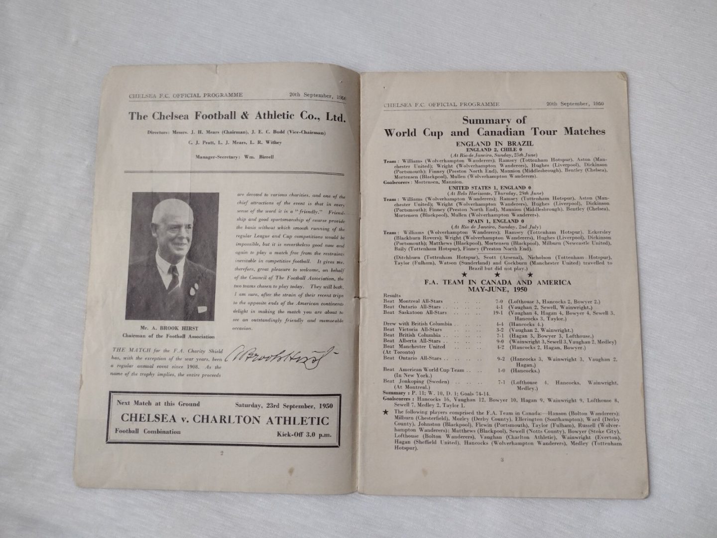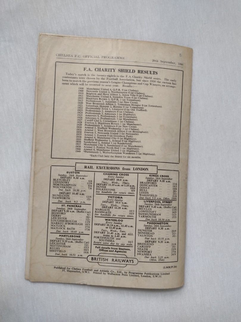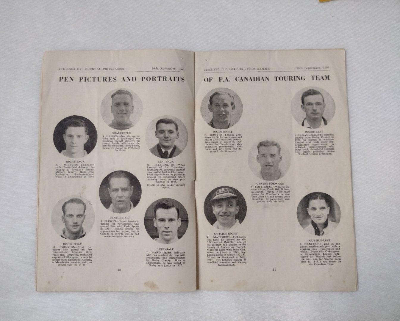 1950 Charity Shield England World Cup XI v Canadian Team 20th September -Chelsea