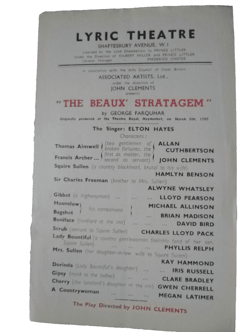 1950 Theatre Programme The Beaux Stratagem- John Clements Kay Hammond G Farquhar