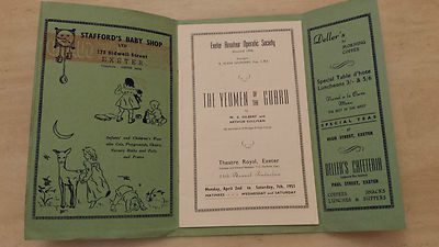 You are purchasing an original vintage theatre programme of:  1950 Theatre Royal Exeter: Gilbert & Sullivan opera – THE YEOMEN OF THE GUARD