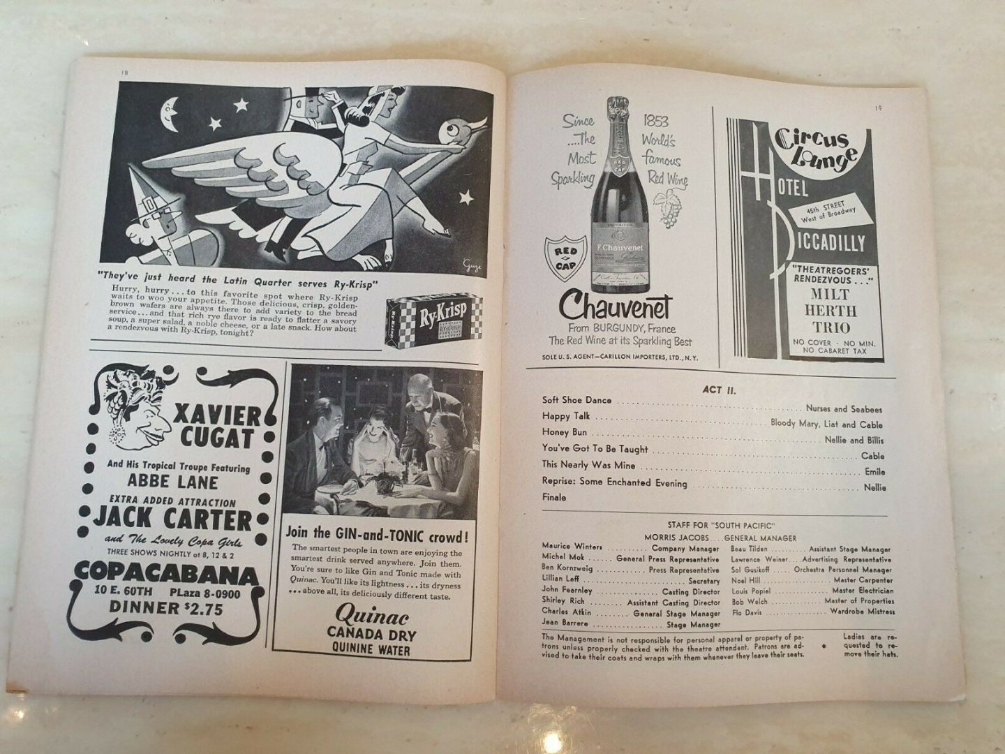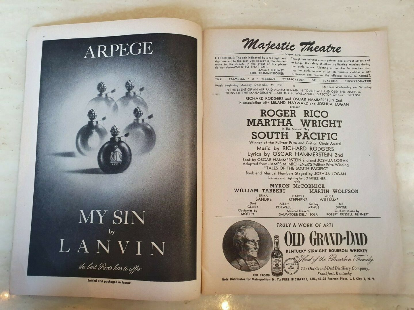 1951 MAJESTIC THEATRE: SOUTH PACIFIC – ROGER RICO MARTHA WRIGHT MYRON McCORMICK
