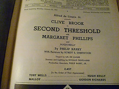 1951 Playbill Second Threshold – Clive Brook Margaret Phillips Hugh Reilly