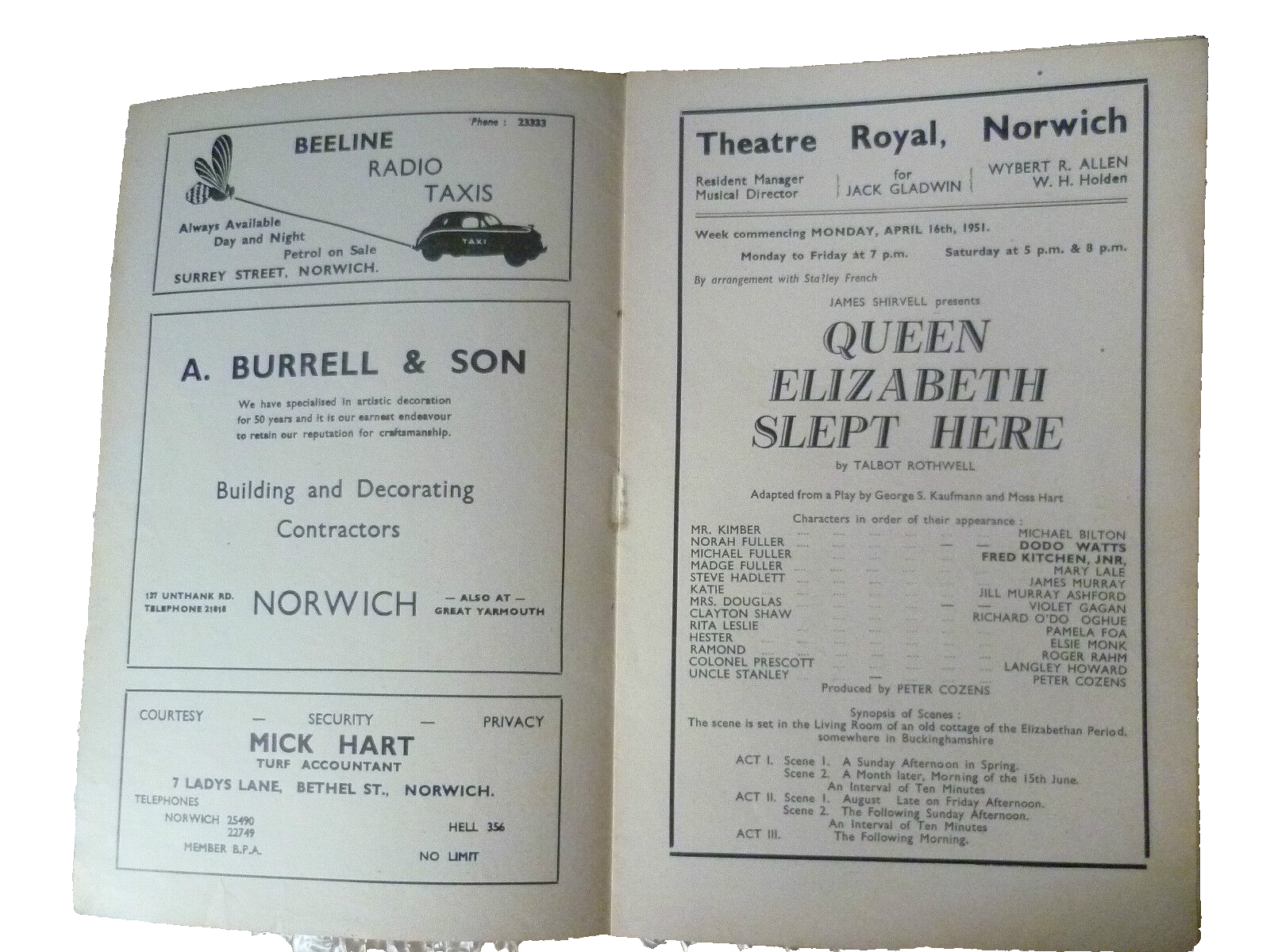 You are purchasing very collectable & Original Programme. 1951 Theatre Programme- QUEEN ELIZABETH SLEPT HERE by Talbot Rothwell