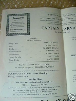 1951 Theatre Programme- Captain Carvallo – Barbara Wood Andree Melly Guy Verney