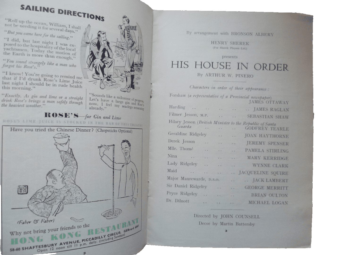 1951 Theatre Programme His House In Order – James Ottaway Pamela Sterling