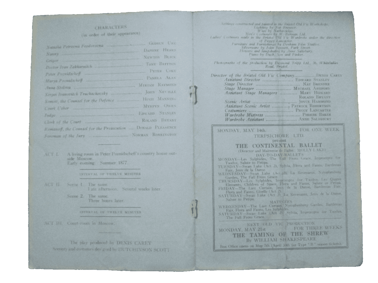 1951 Theatre Programme The Kreutzer Sonata – Gudrun Ure Daphne Heard Pamela Alan