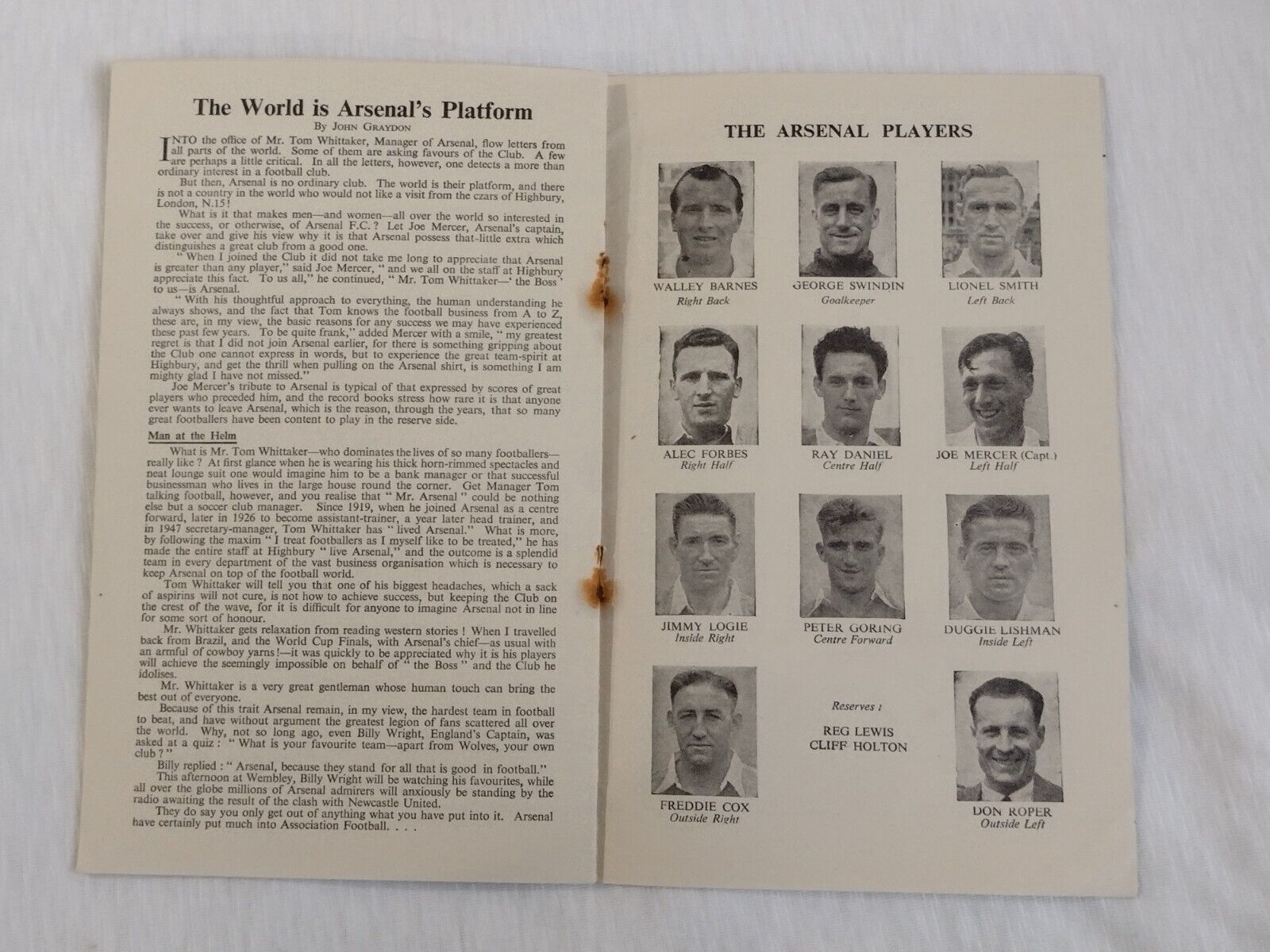 Seller note: The lovely Original football programme has rusty staple Staple pin removed otherwise is in very good condition for its age. Please see pictures as it provides part of the description.