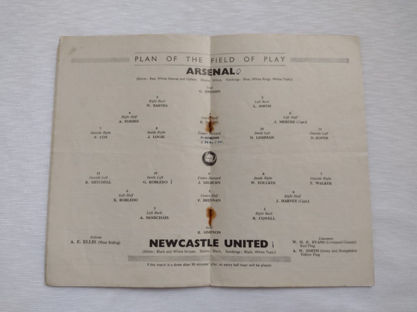 "This programme has rusty staple and a name change otherwise is very good condition for its age. ''Please see the picture as it forms part of the description.”"