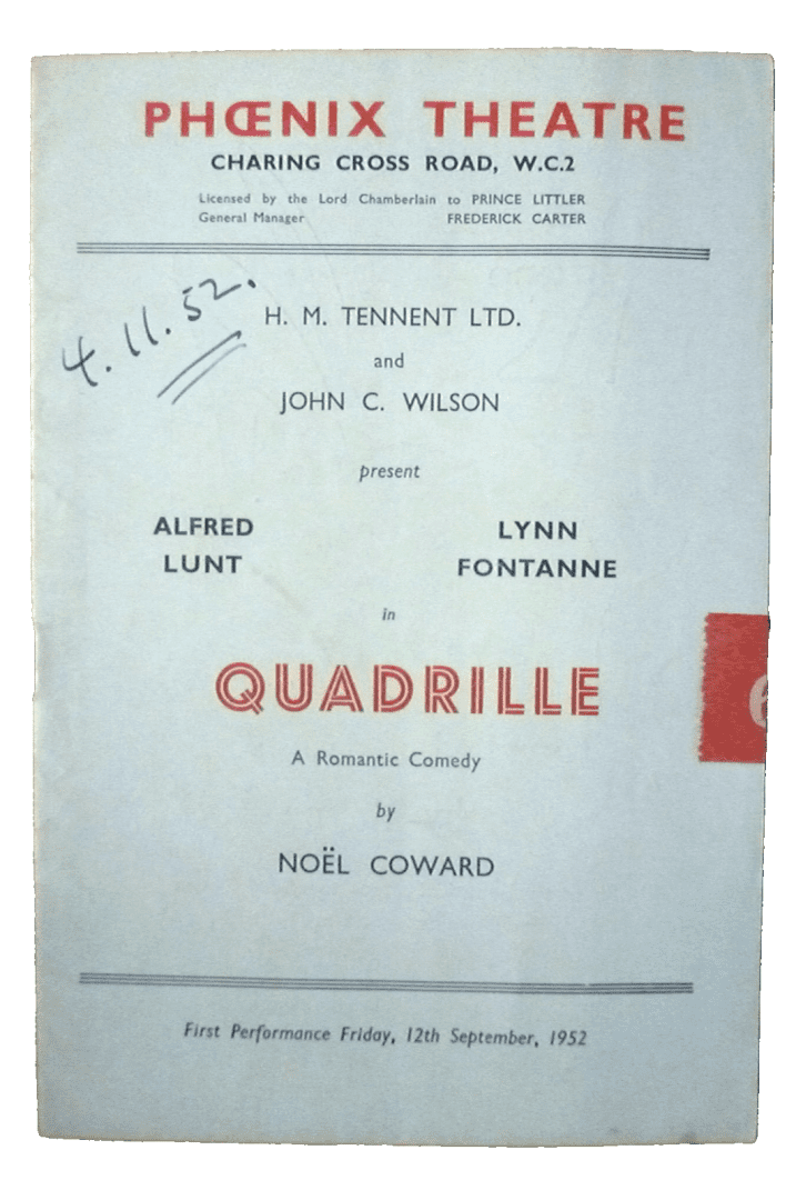 1952 Theatre Programme Quadrille – Alfred Lunt Lynn Fontanne