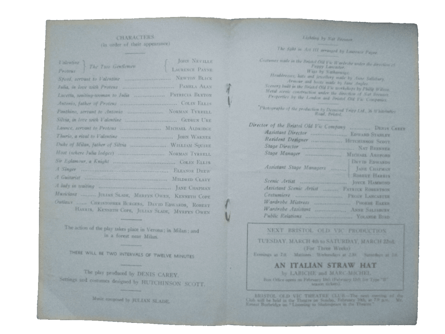1952 Theatre Programme The Two Gentlemen Of Verona – John Neville Laurence Payne