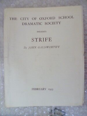 1953 Oxford School Dramatic Socity Programme+press Cutting Strife By J Galswort