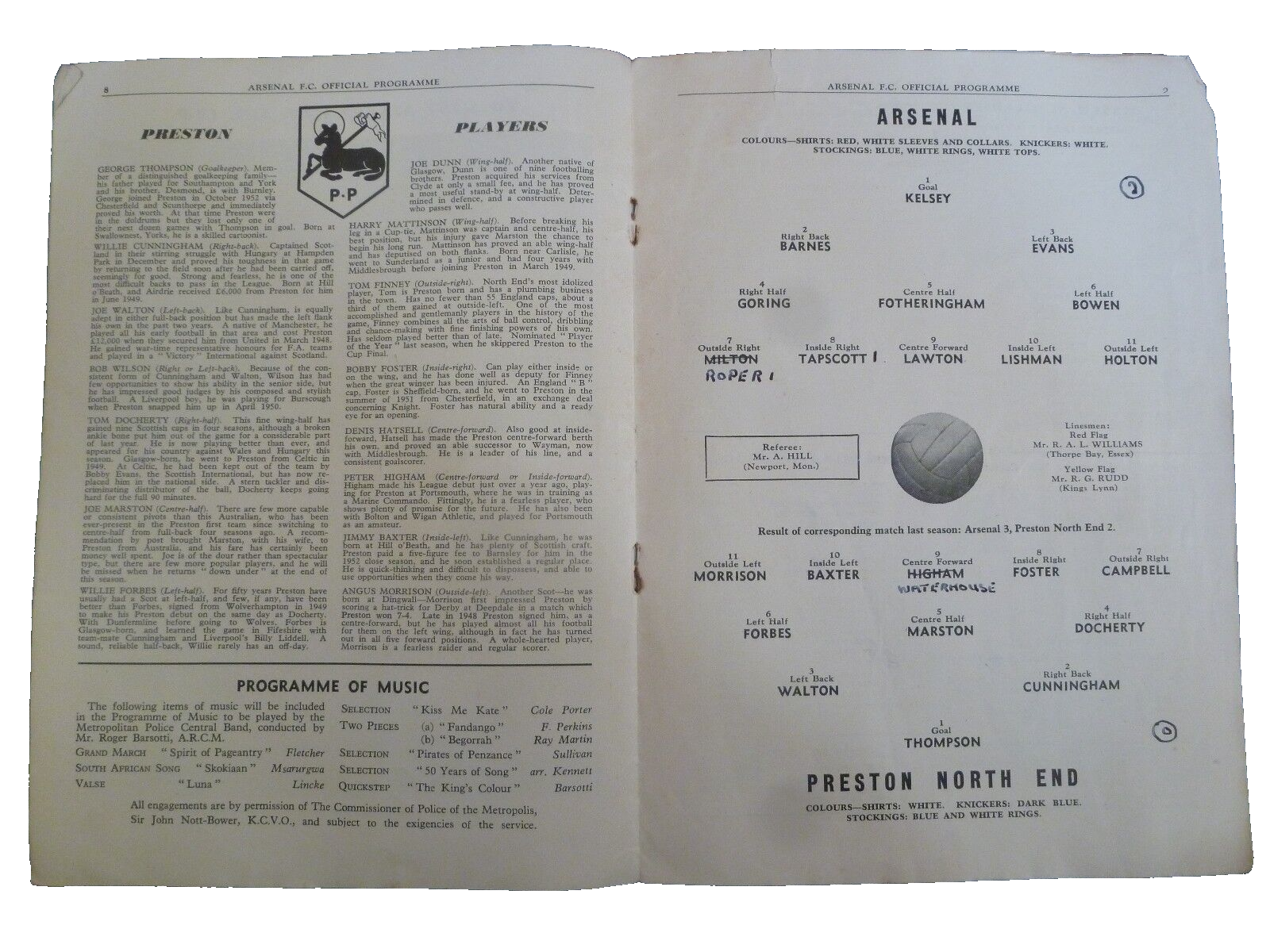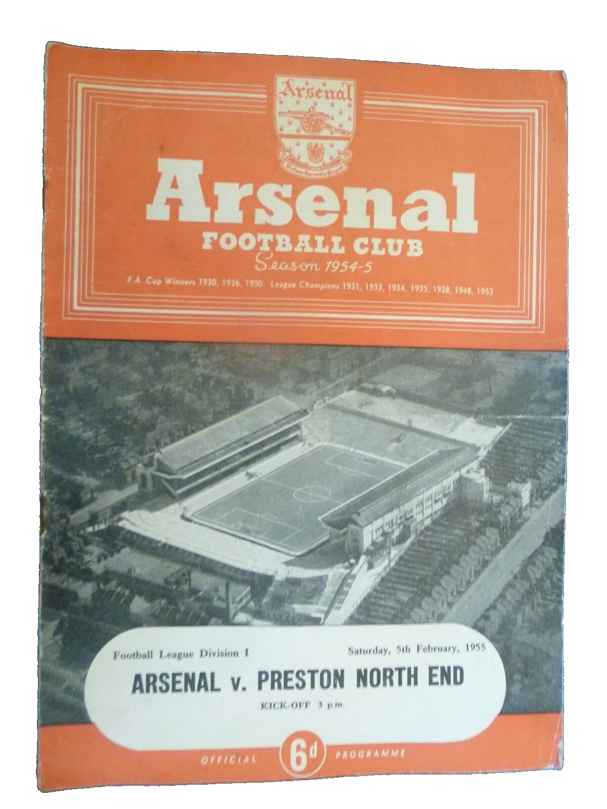 1954/55 Arsenal v Preston North End – 5th February Football Programme
