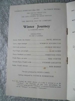 1954 Theatre Programme Winter Journey- Clifford Oets