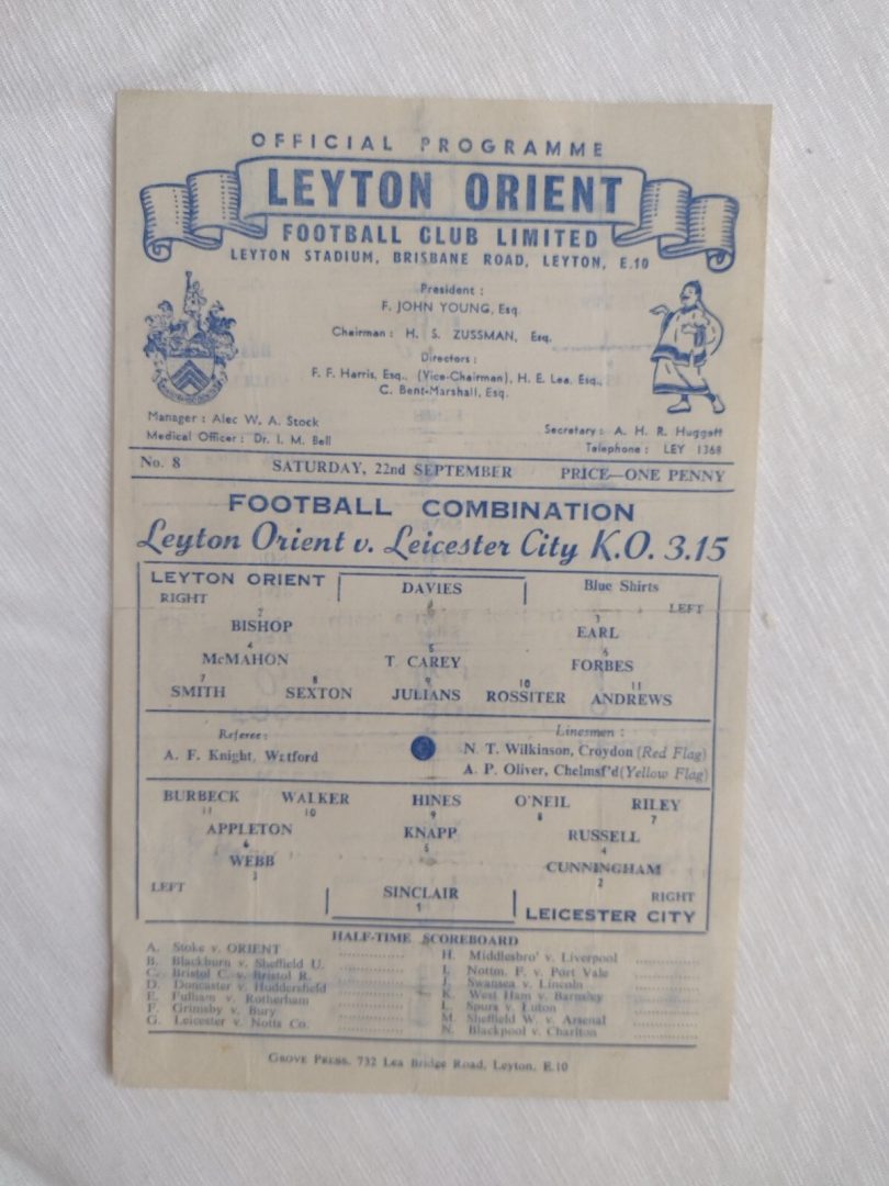 1956/57 Leyton Orient v Leicester City 22nd Sept Football Combination Match