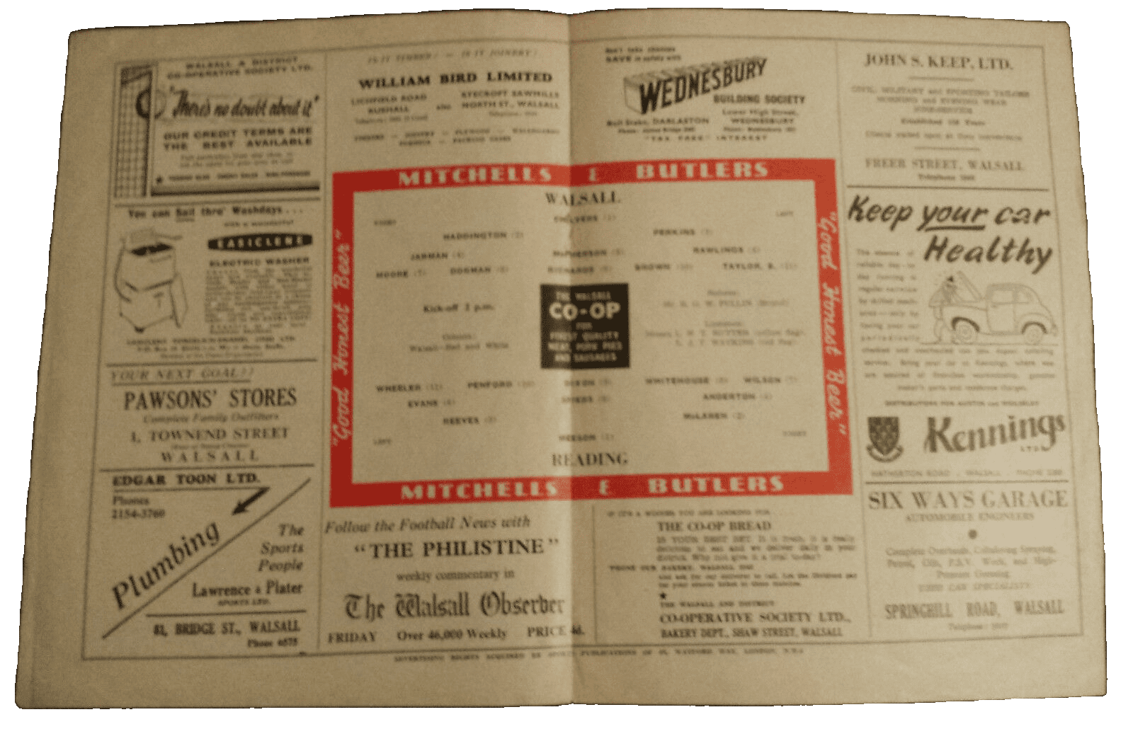 1956/57 Walsall v Reading – Football League North Division 3 – 23rd February