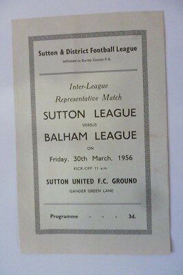 Be the first to review “1956 Sutton League v Balham League 30th March Inter League Representative Match” Cancel reply