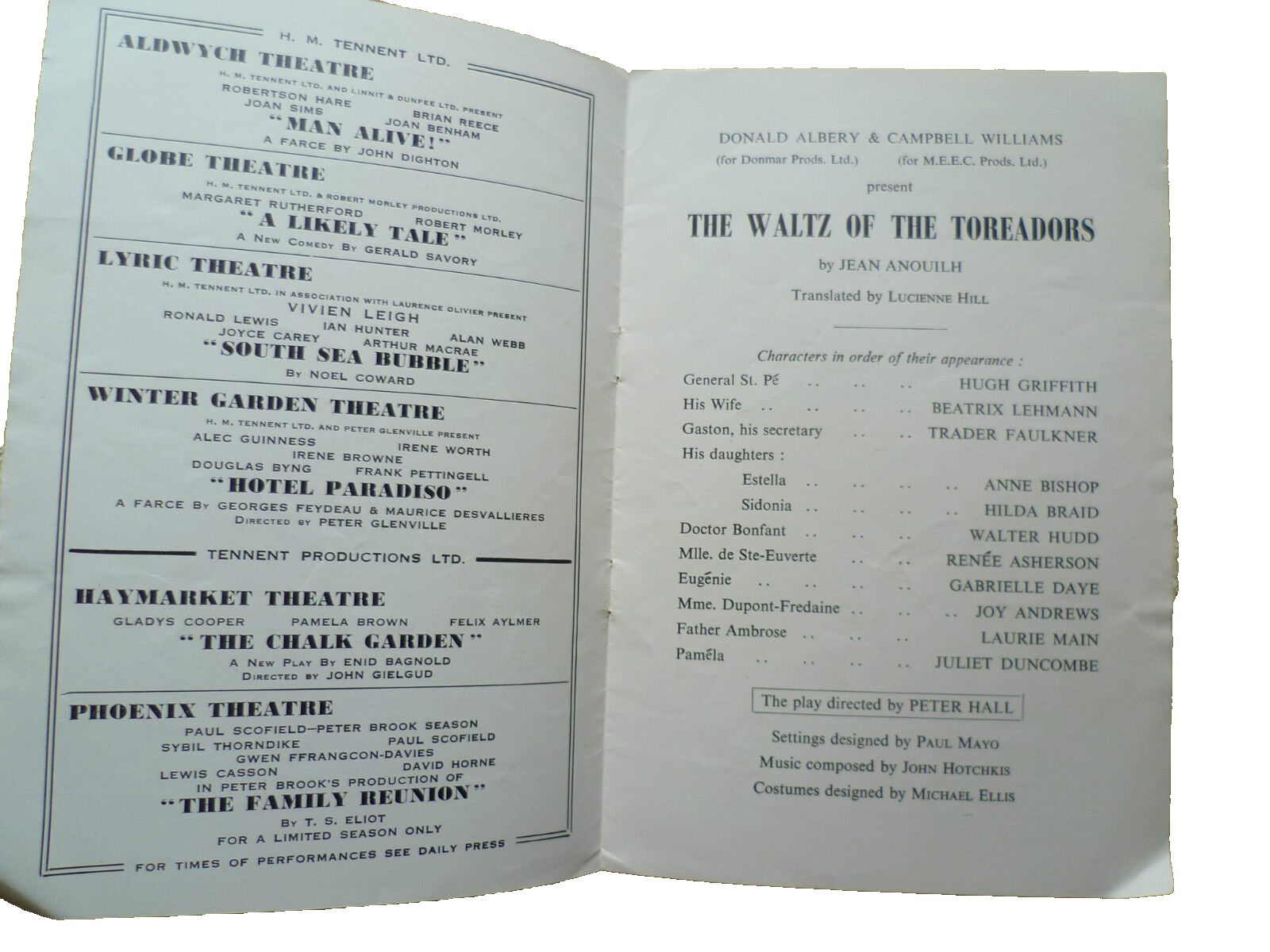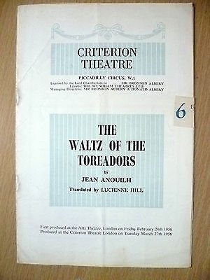 YYou are purchasing vintage & original Programme of : CRITERION THEATRE PROGRAMME 1956- THE WALTZ OF THE TOREADORS by Jean Anouilh