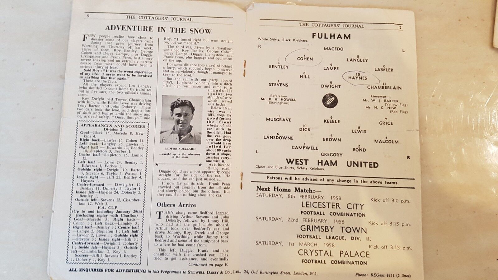 1957/58 Fulham v West Ham United 1st February
